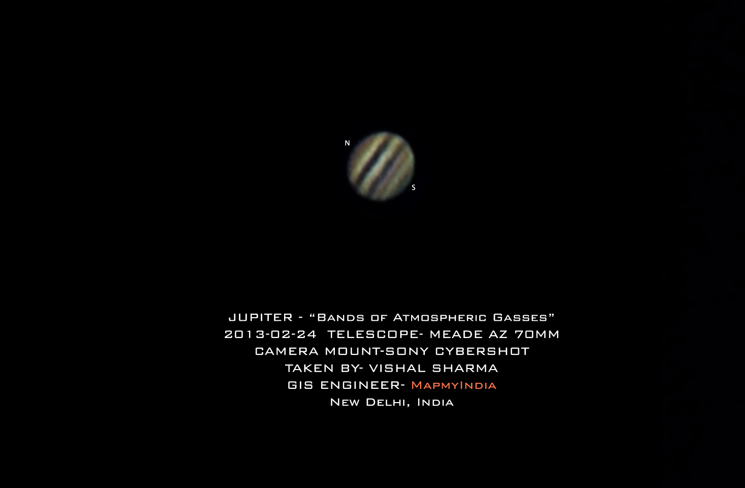 UPITER - “Bands of Atmospheric Gasses” 2013-02-24 TELESCOPE- MEADE AZ 70MM CAMERA MOUNT-SONY CYBERSHOT TAKEN BY- VISHAL SHARMA GIS ENGINEER- MapmyIndia New Delhi, India