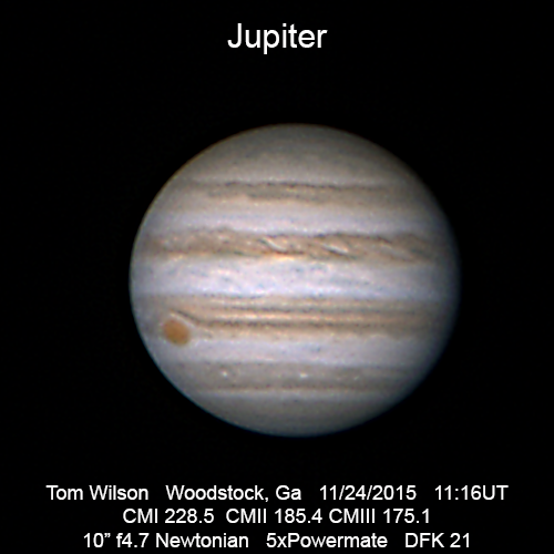 Jupiter and Great Red Spot in fair seeing.