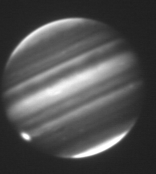 2.16-micron observation of Jupiter taken by the staff of NASA's Infrared Telescope Facility (IRTF) using the guide camera of the SpeX facility infrared spectrometer as a part of a program to characterize atmospheric variability in Jupiter to support the Juno mission.