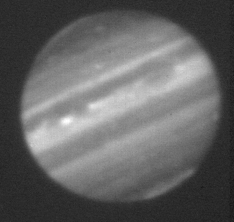 3.80-micron (L' filter) observation of Jupiter taken by the staff of NASA's Infrared Telescope Facility (IRTF) using the guide camera of the SpeX facility infrared spectrometer as a part of a program to characterize atmospheric variability in Jupiter to support the Juno mission. This filter is sensitive to sunlight reflected from clouds as deep as 1 bar, plus some additional radiation from H3+ aurora toward the poles.
