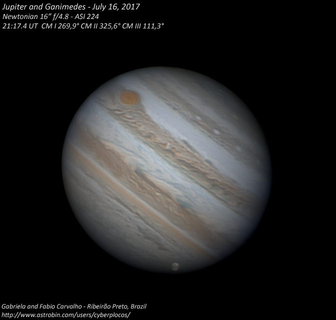 Jupiter and Ganimedes in the night of July 16 with variable seeing and good transparency!