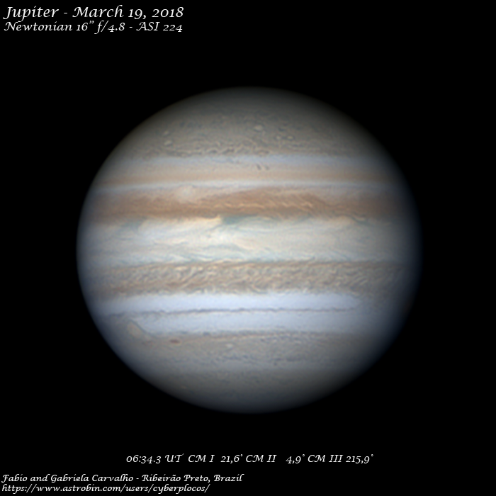 Jupiter on March 19 with fair to good seeing and good transparency