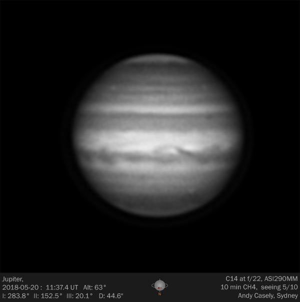 Very poor seeing, 10min (5x2min) derotated in WinJupos