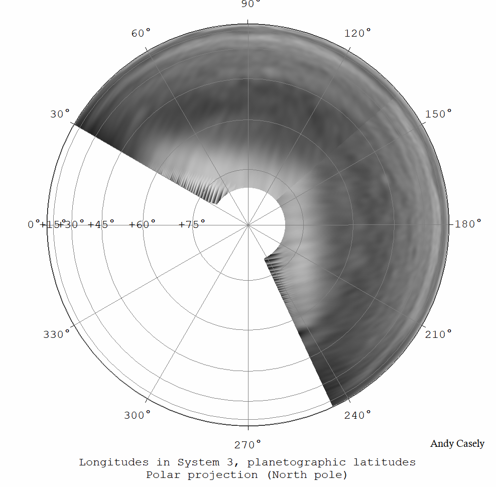 North polar map in methane from two images, 11:59 & 13:45UT, fair seeing.