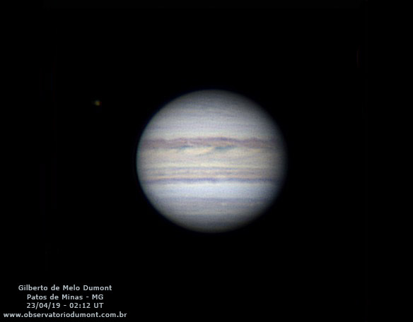 Jupiter and Ganymede. Image taked by Gilberto de Melo Dumont, in Patos de Minas - MG (Brazil) through 200mm newtonian Telescope.