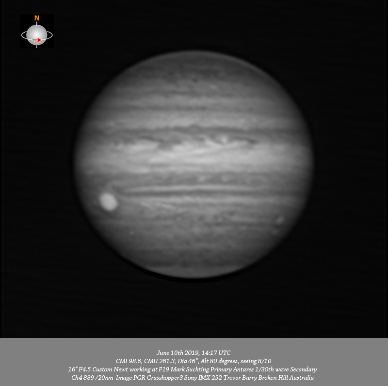 Ch4 data. Jupiter at opposition. Very hi-res particularly down the down stream structure from the material ejected from the eye of the GRS.