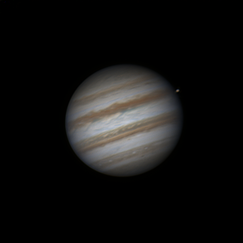 Jupiter+ Moon Io, 2016-01-22 Time 04:21St Pölten Austria , SC9,25 , ADC Pierro Astro, ca f30, Point Grey Blackfly 1.4 MP Color GigE PoE (Sony IMX104) fps 60, 8500 frames