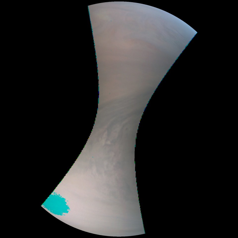 exposure) to try to detect Jupiter’s aurora. We imaged at two different geometries, looking directly down at the pole