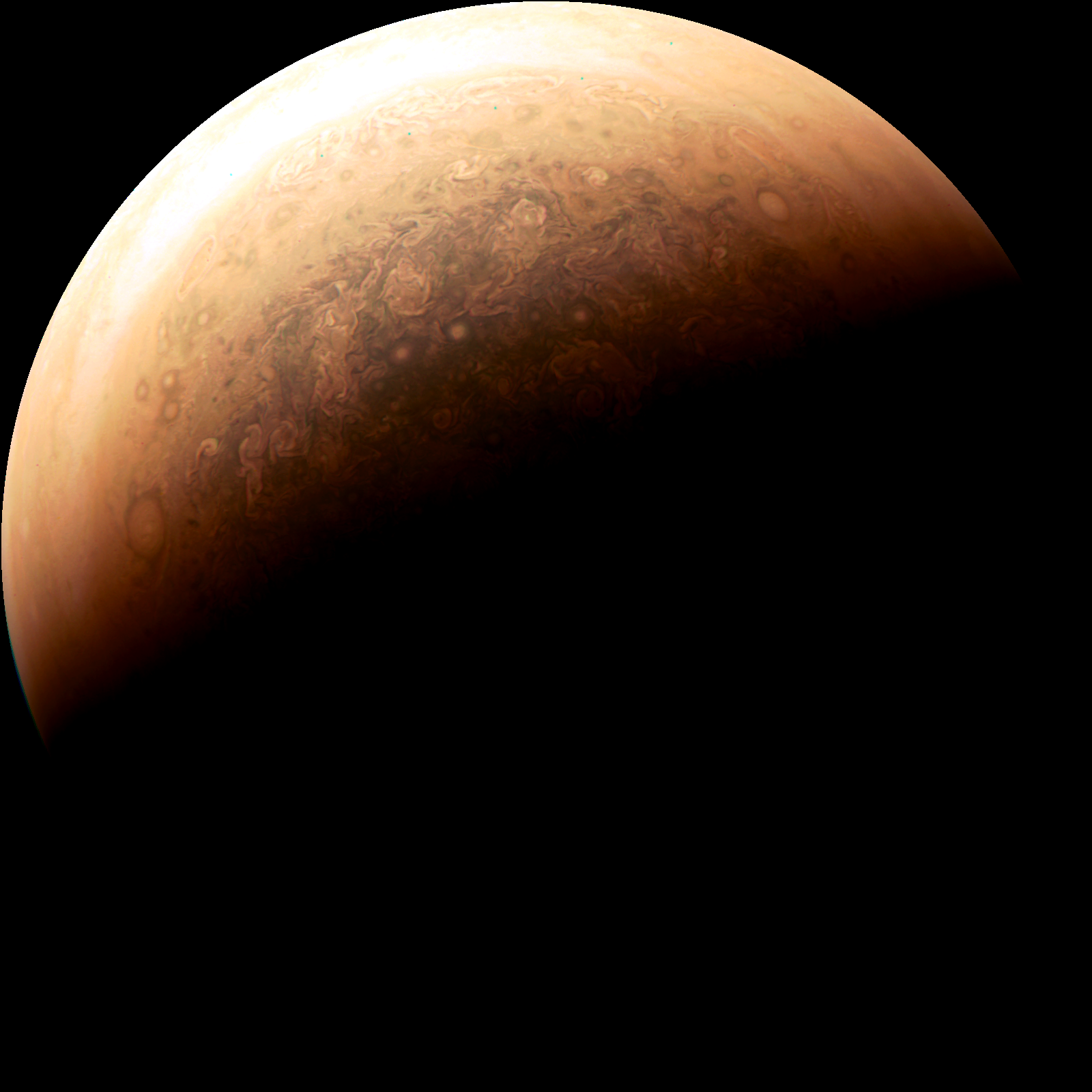 We invite you to download raw JunoCam images posted here and do your own image processing on them. Be creative! Anything from cropping to color enhancing to collaging is fair game. Then upload your creations here.