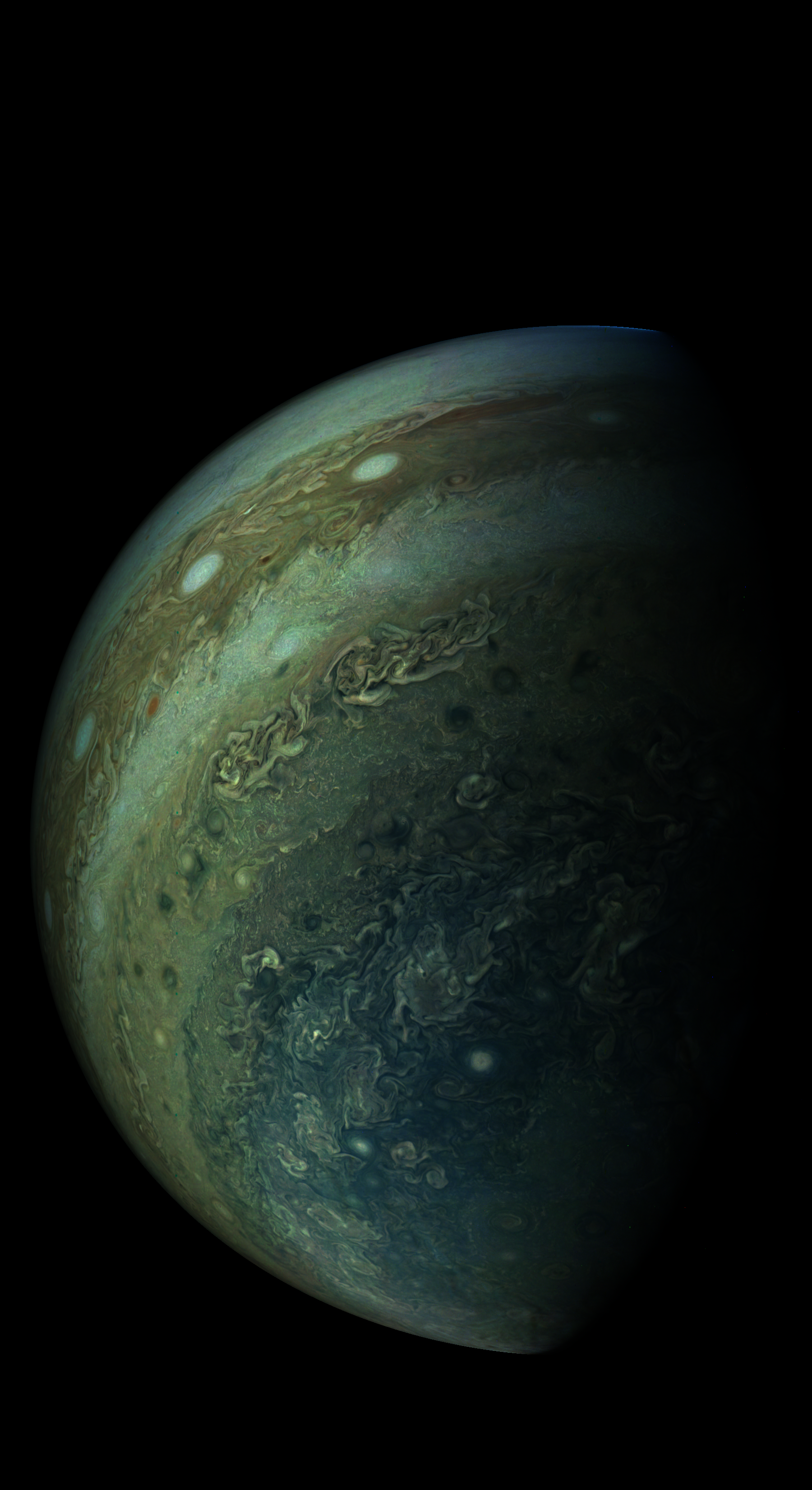 The image is rendered directly from the raw image. Resolution is 30 pixels per degree in a spherical coordinate system, as seen from JunoCam at image stop time.