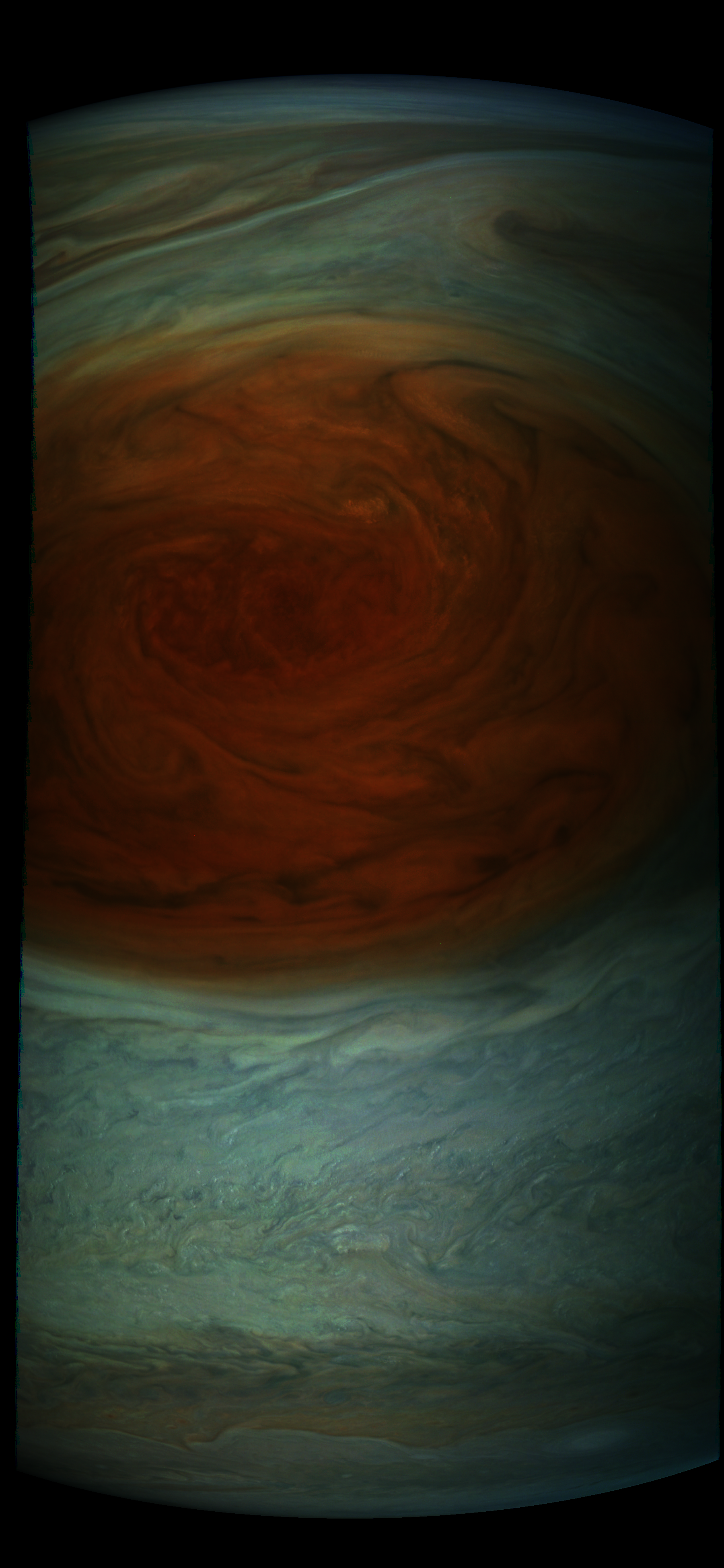 Junocam pixels are 12 bits deep from the camera but are converted to 8 bits inside the instrument using a lossless "companding" table, a process similar to gamma correction, to reduce their size. All Junocam products on the missionjuno website are in this 8-bit form as received on Earth. Scientific users interested in radiometric analysis should use the "RDR" data products archived with the Planetary Data System, which have been converted back to a linear 12-bit scale.