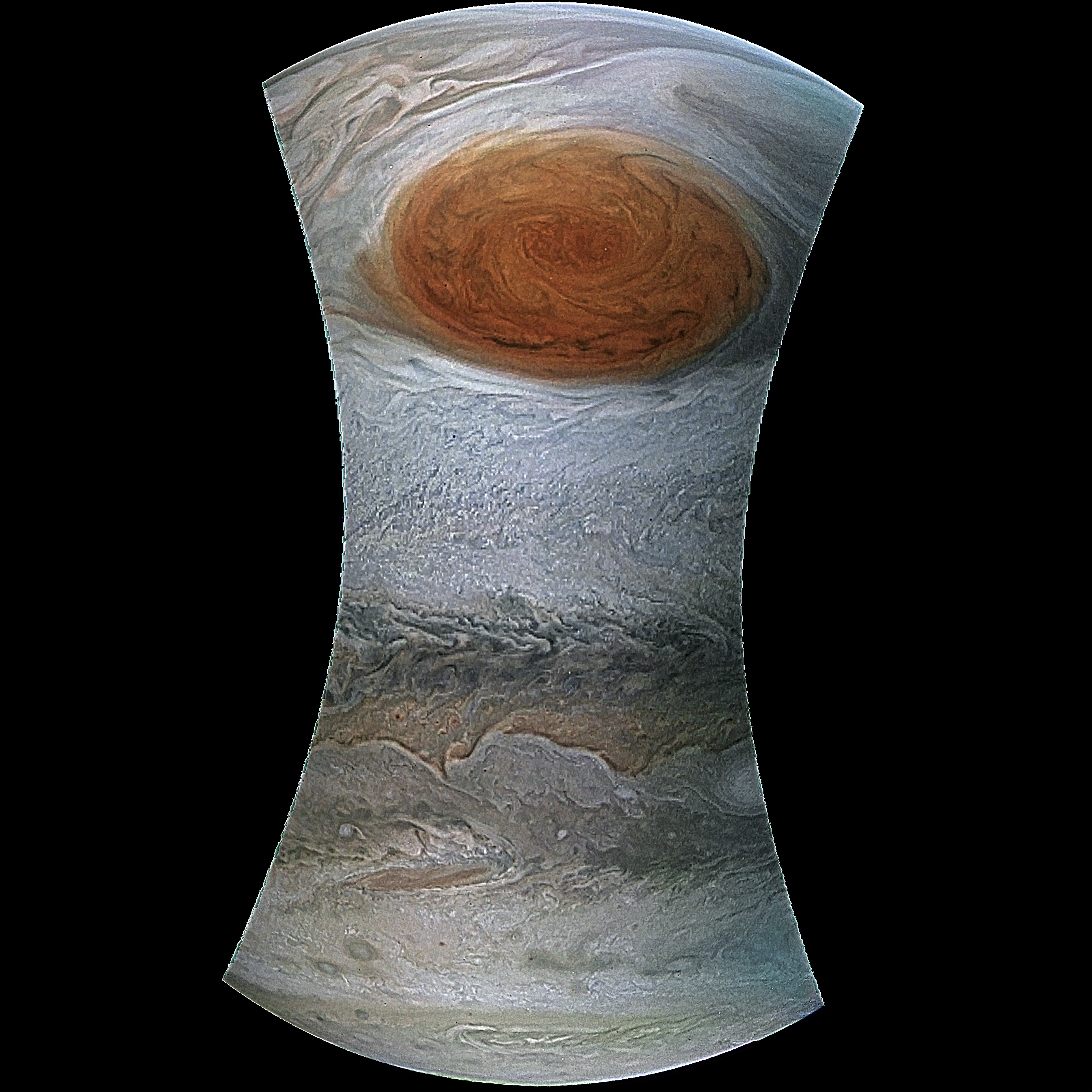 Jupiters Red Spot - enlarged resolution, sharpened, noise filter, rebalanced