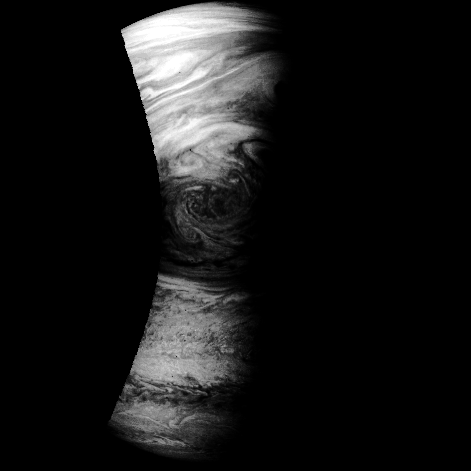 Junocam pixels are 12 bits deep from the camera but are converted to 8 bits inside the instrument using a lossless "companding" table, a process similar to gamma correction, to reduce their size. All Junocam products on the missionjuno website are in this 8-bit form as received on Earth. Scientific users interested in radiometric analysis should use the "RDR" data products archived with the Planetary Data System, which have been converted back to a linear 12-bit scale.