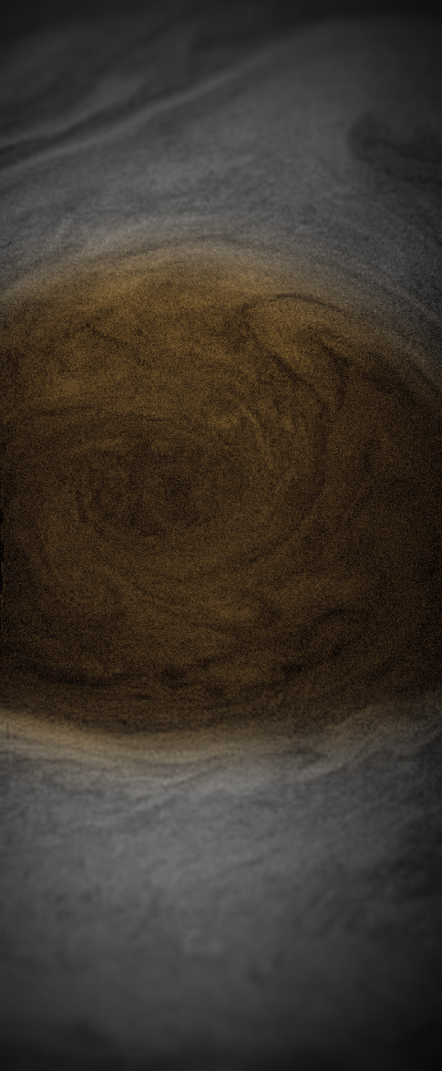 A dark mysterious take on the red spot on jupiter. Editted and cropped from Juno spacecraft photographs.