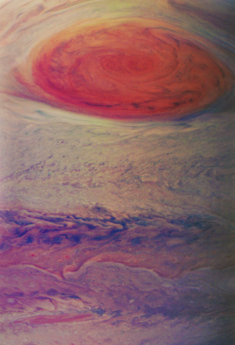 LOWER GREAT RED SPOT ATMOSPHERIC FLOW - High contrast/saturation