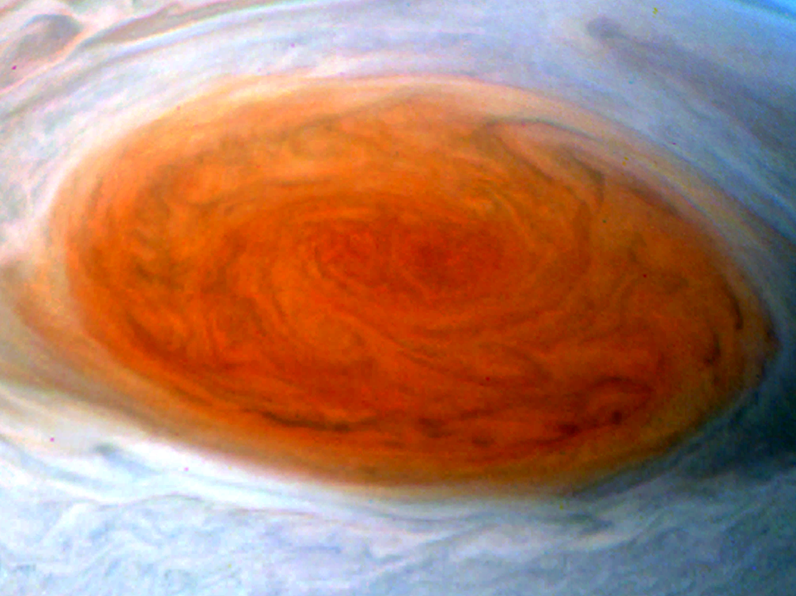 Junocam pixels are 12 bits deep from the camera but are converted to 8 bits inside the instrument using a lossless "companding" table, a process similar to gamma correction, to reduce their size. All Junocam products on the missionjuno website are in this 8-bit form as received on Earth. Scientific users interested in radiometric analysis should use the "RDR" data products archived with the Planetary Data System, which have been converted back to a linear 12-bit scale.