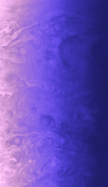 Junocam pixels are 12 bits deep from the camera but are converted to 8 bits inside the instrument using a lossless "companding" table, a process similar to gamma correction, to reduce their size. All Junocam products on the missionjuno website are in this 8-bit form as received on Earth. Scientific users interested in radiometric analysis should use the "RDR" data products archived with the Planetary Data System, which have been converted back to a linear 12-bit scale.