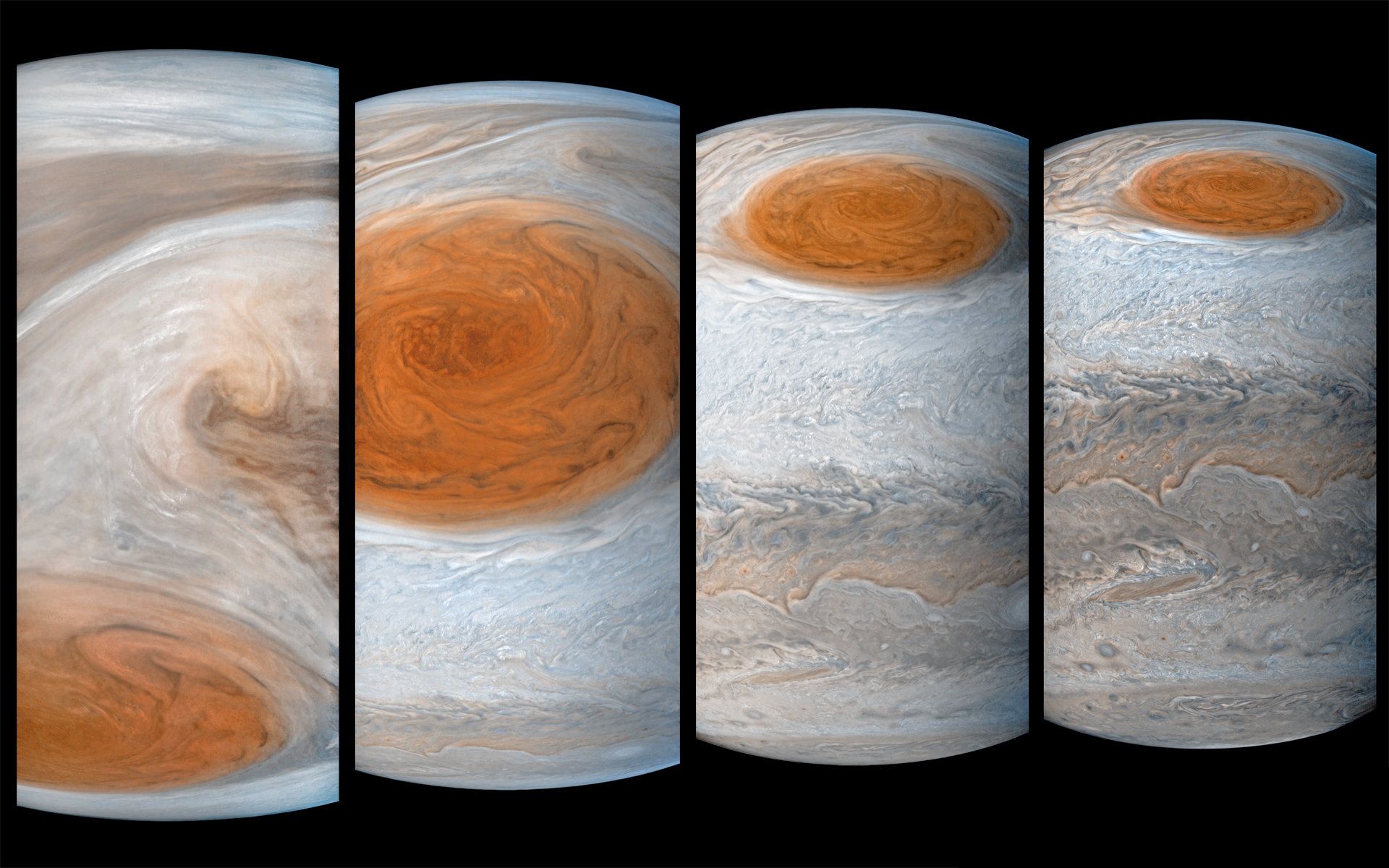 Montage of all four GRS images acquired during the Perijove 7 Great Red Spot imaging campaign.