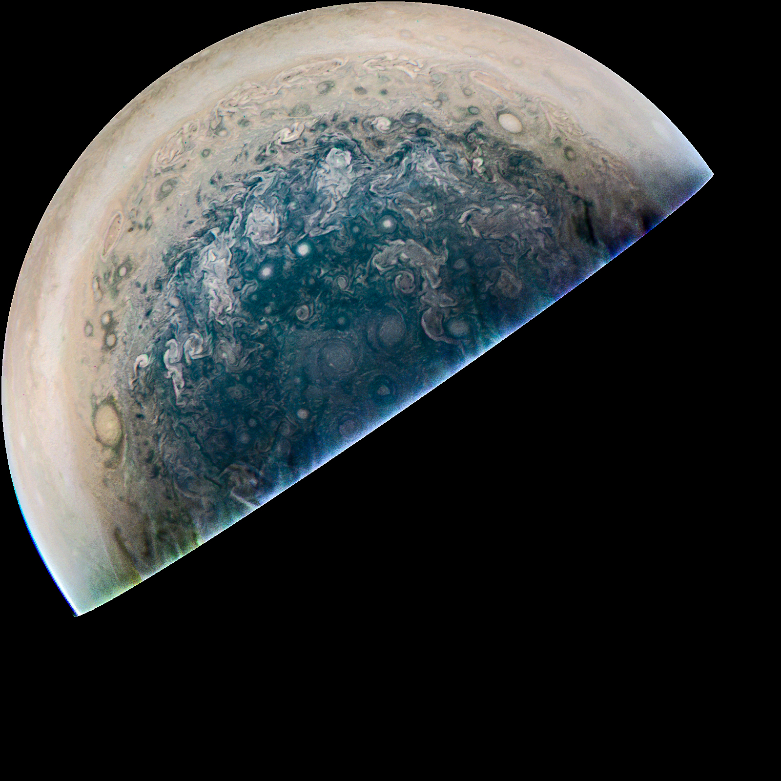 We invite you to download raw JunoCam images posted here and do your own image processing on them. Be creative! Anything from cropping to color enhancing to collaging is fair game. Then upload your creations here.