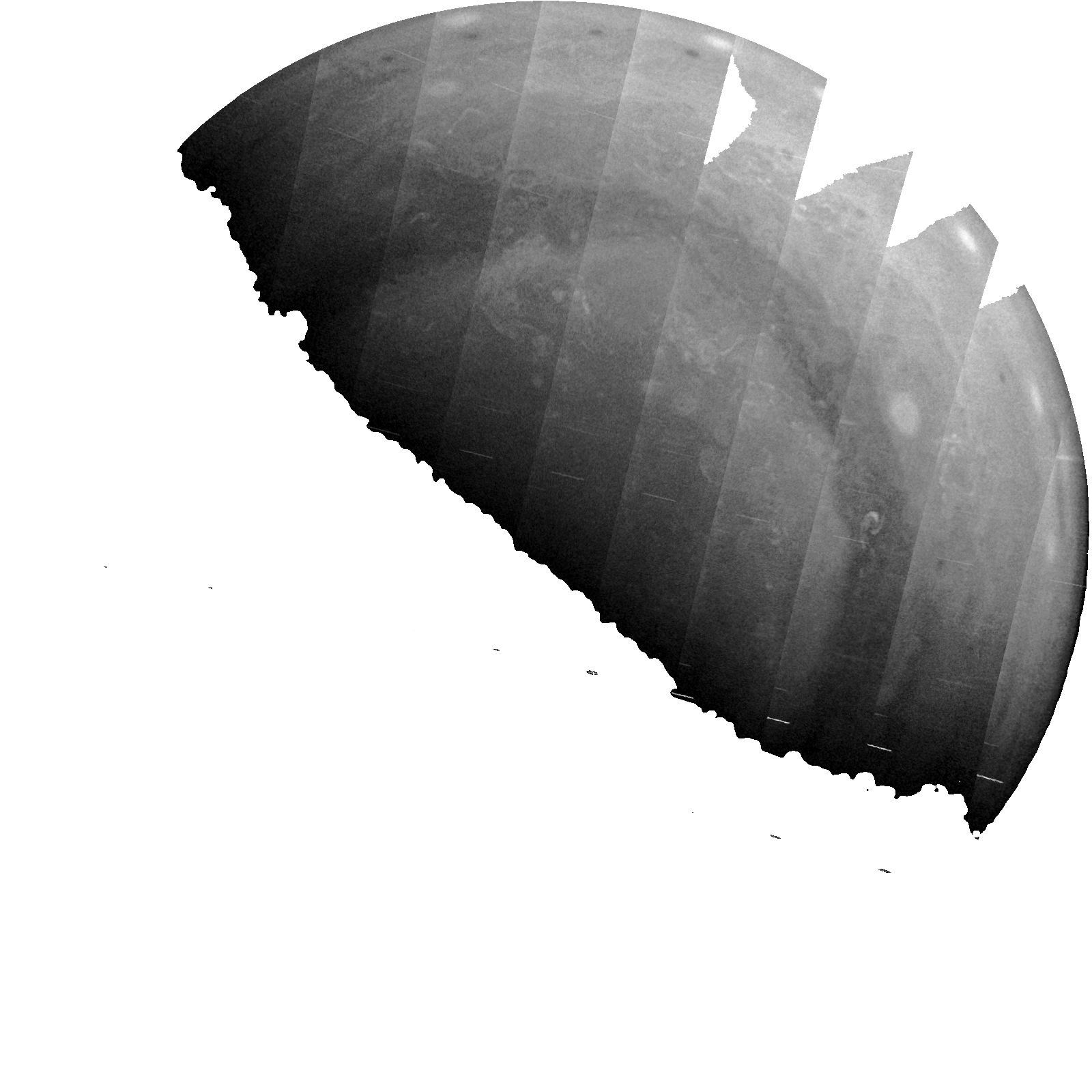 South Pole at Minimum Emission Angle image with brightness stretched, and rotated 13 degrees to align with companion RGB image.
