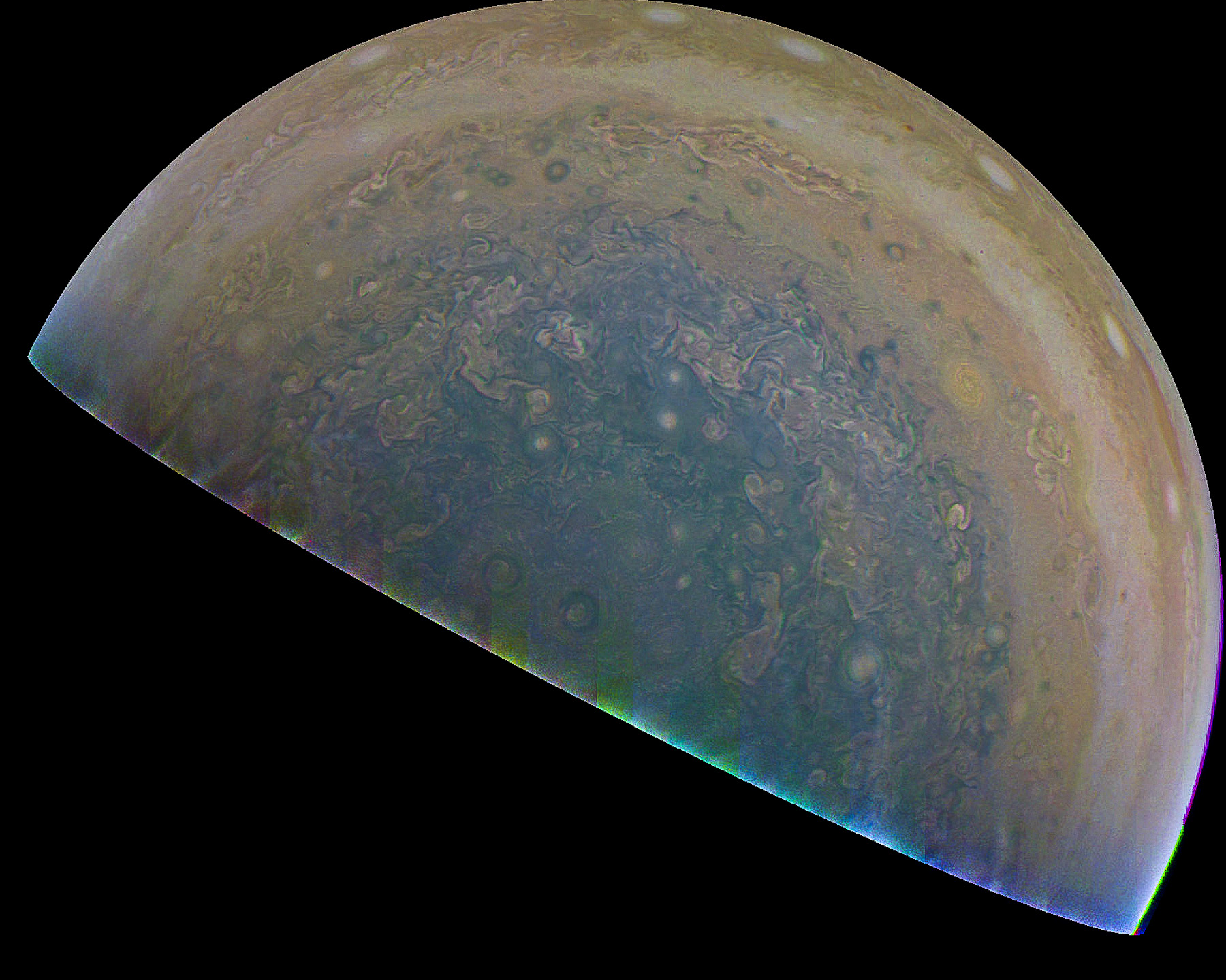 This image is from JUNO SPACECRAFT 7-11-17. It was processed in Photoshop. Enhancements to color, contrast and sharpness were utilized.