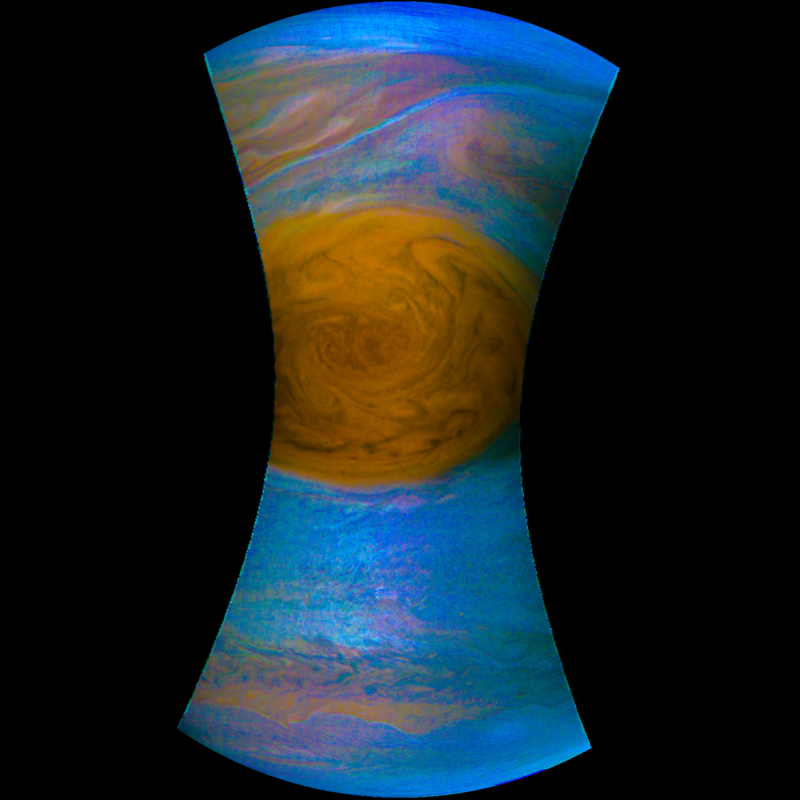 Junocam pixels are 12 bits deep from the camera but are converted to 8 bits inside the instrument using a lossless "companding" table, a process similar to gamma correction, to reduce their size. All Junocam products on the missionjuno website are in this 8-bit form as received on Earth. Scientific users interested in radiometric analysis should use the "RDR" data products archived with the Planetary Data System, which have been converted back to a linear 12-bit scale.