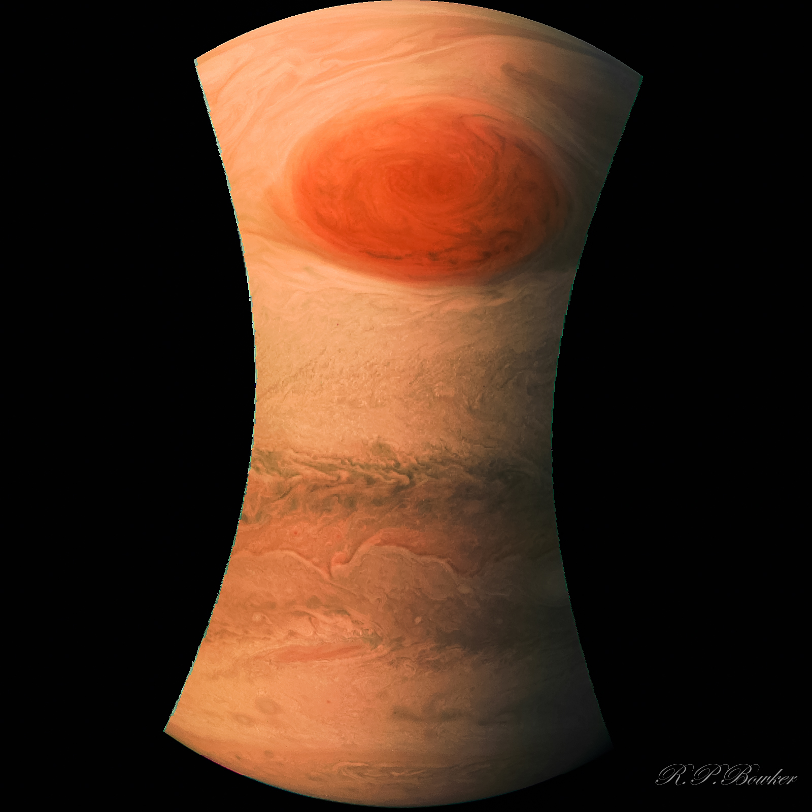 I re-merged the Red, Green and Blue images so I could play around with the individual levels. The result has given the GRS what appears like shadows both in its Eastern side and extending beyond the eastern side.