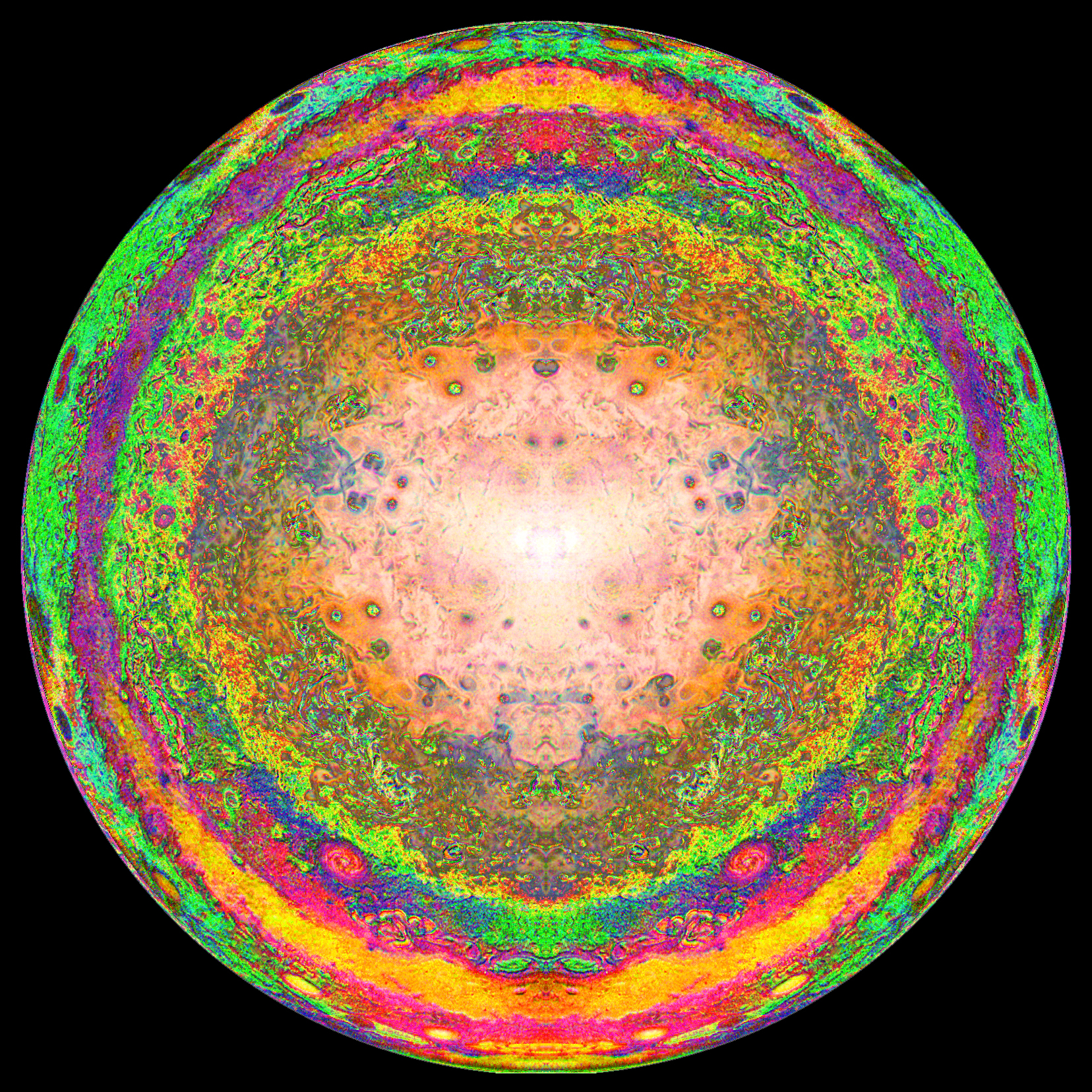 For this image, I played with the South pole view of Jupiter. It turned out rather psychedelic.