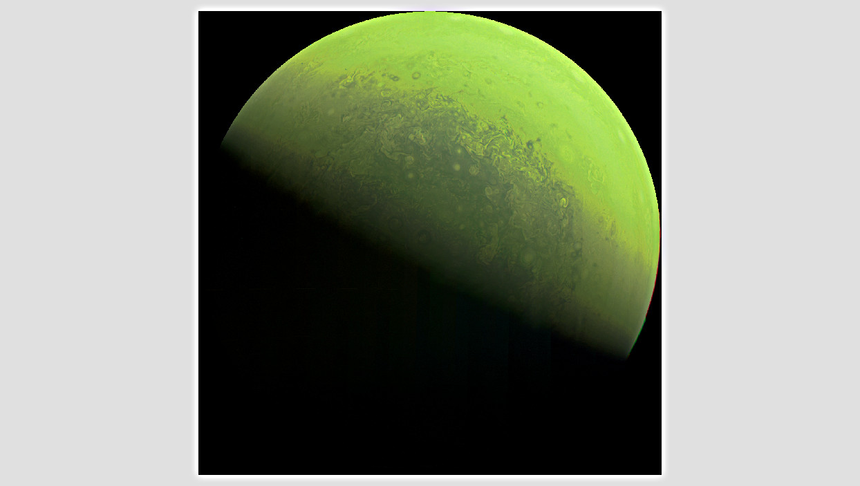 exposure) to try to detect Jupiter’s aurora. We imaged at two different geometries, looking directly down at the pole