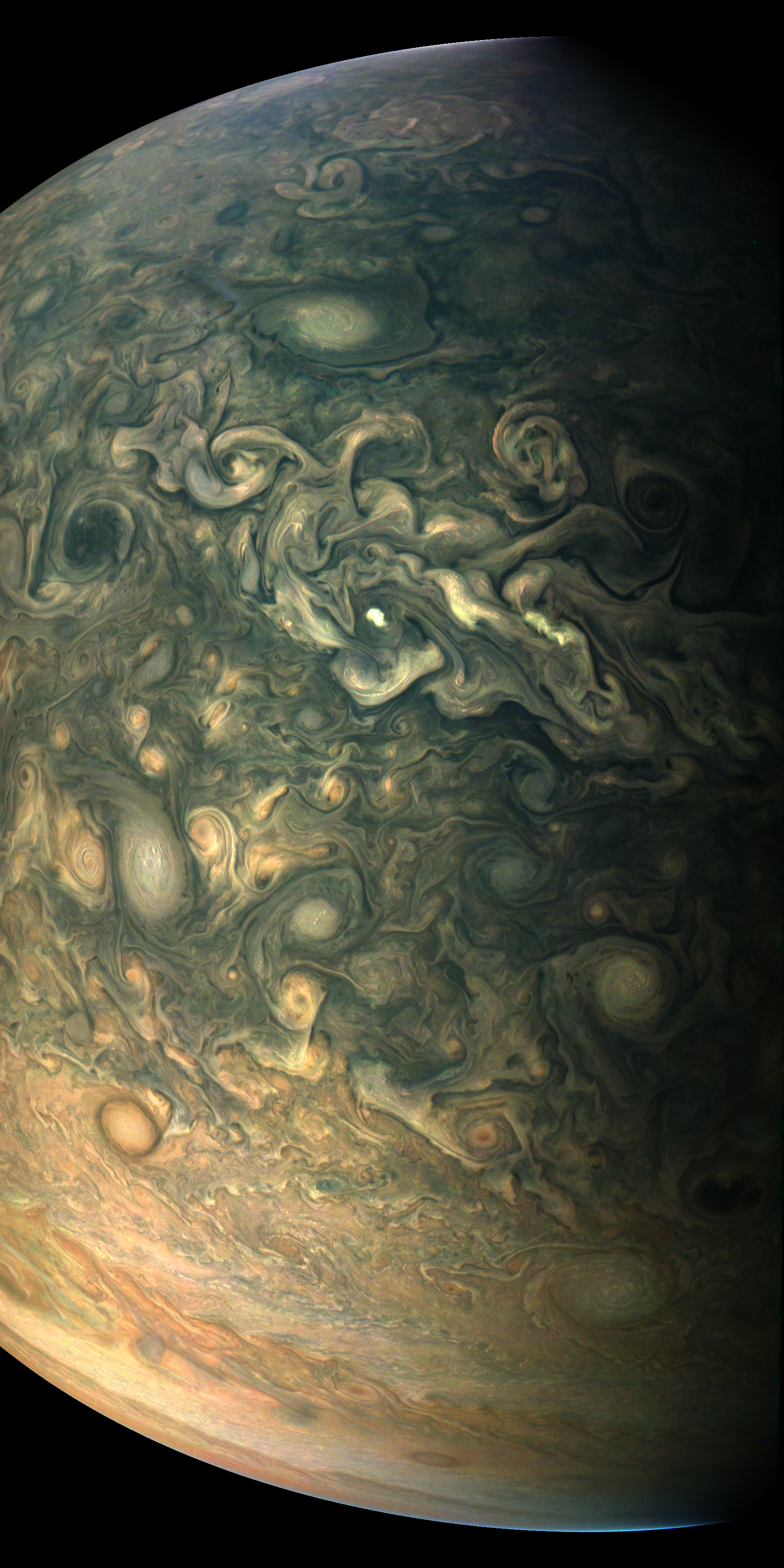This image is derived directly from the raw image consisting of framelets taken while JunoCam was rotating together with Juno.