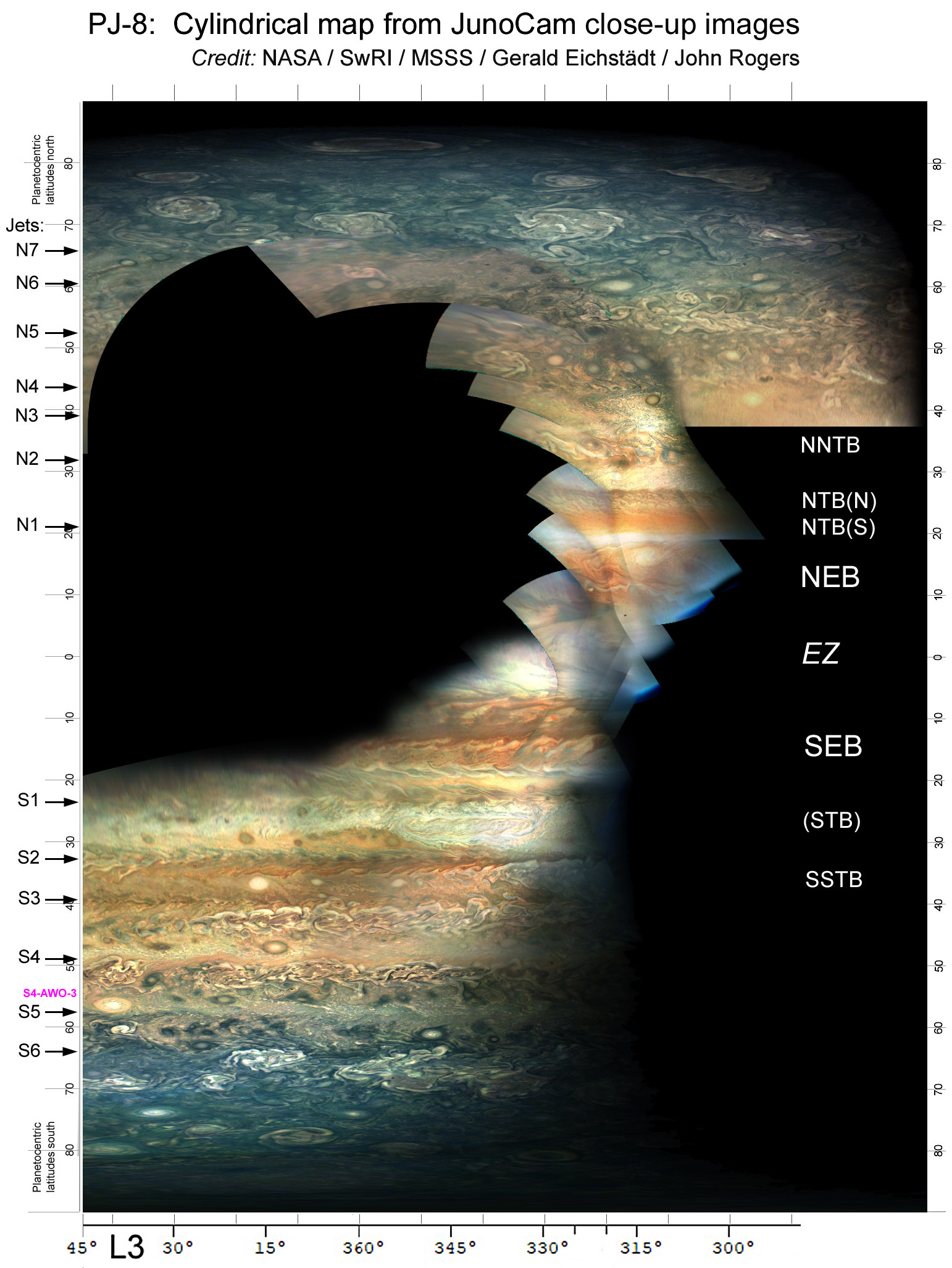 PJ8: Cylindrical map of the closeup pimages