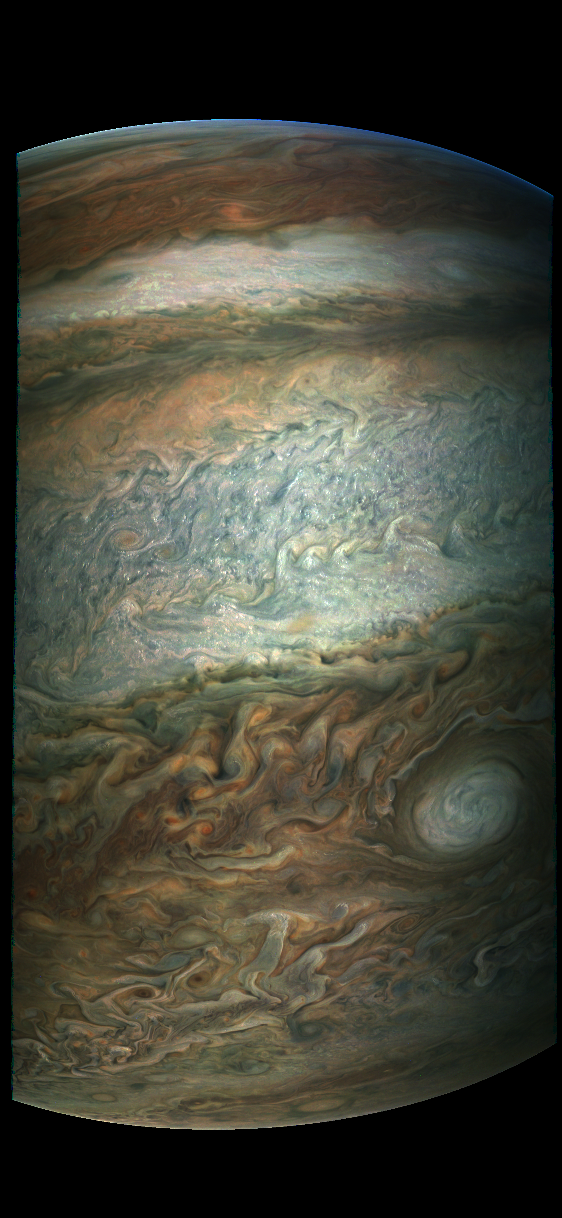 This image is reconstructed from JunoCam data taken during Juno's Perijove-09.