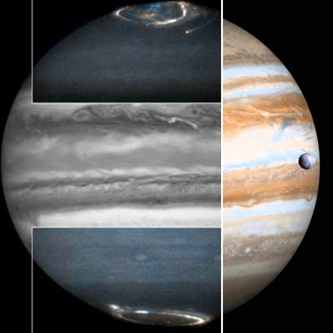 exposure) to try to detect Jupiter’s aurora. We imaged at two different geometries, looking directly down at the pole