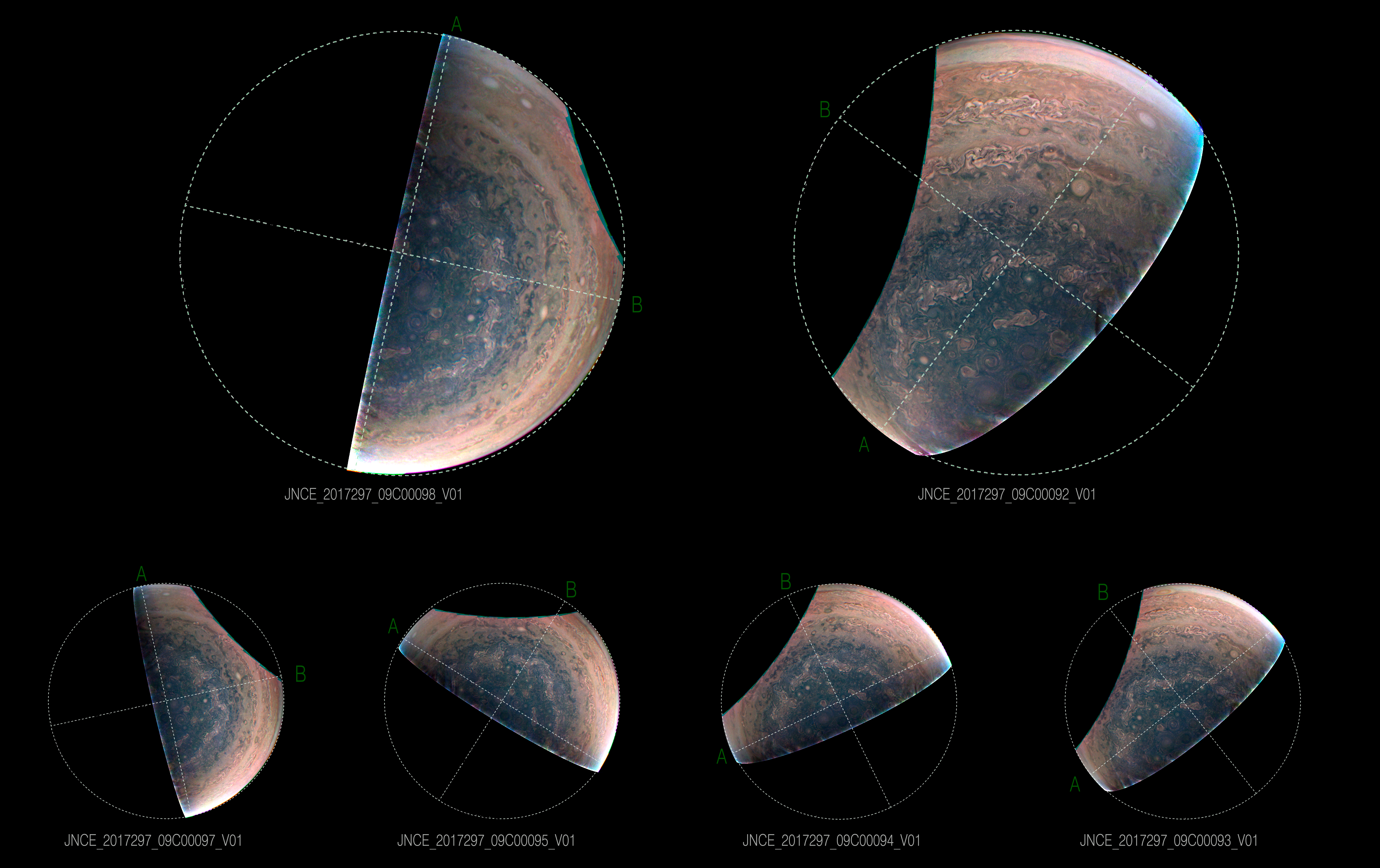 The JunoCam images are identified by a small spacecraft icon. You will see both raw and processed versions of the images as they become available. The JunoCam movie posts have too many images to post individually, so we are making them available for download in batches as zip files.