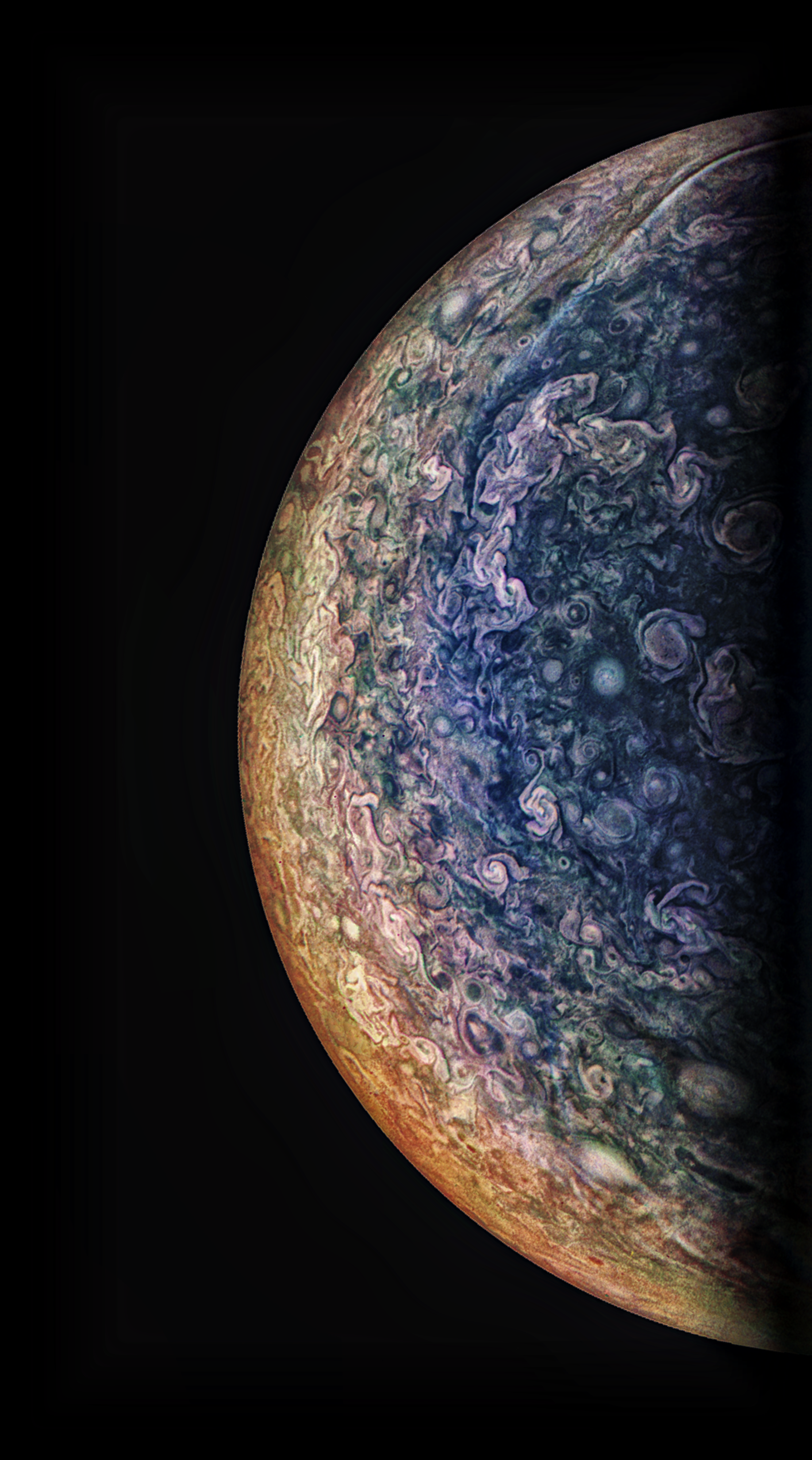 Juipter's South Pole, processed looking to bring out more features from the region, which, in turn, has resulted in a slightly oversaturated tone.