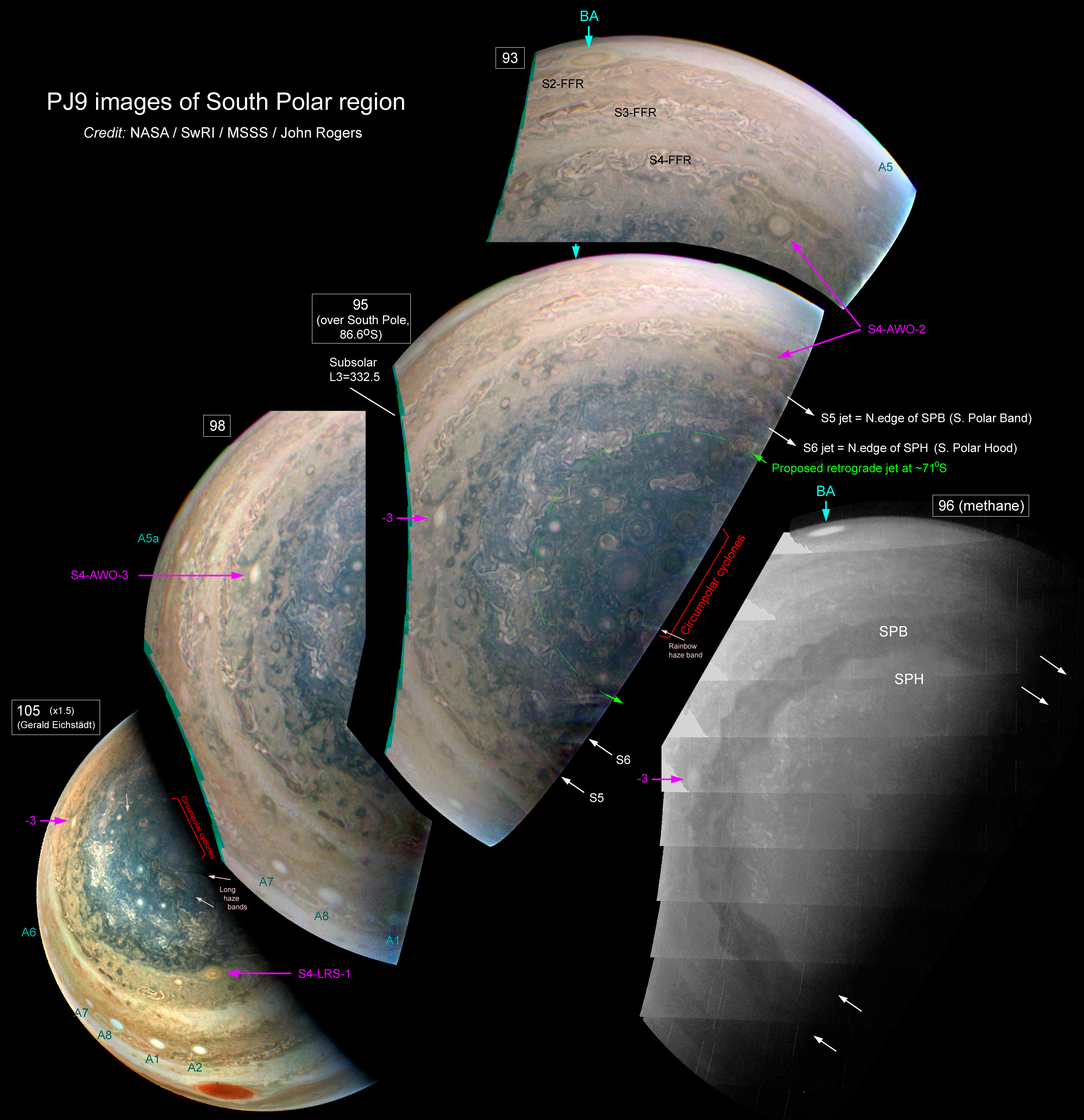 This figure indicates the features of interest in the south polar region, all beautifully shown on these images at PJ9. This is from a report on the PJ9 images, posted on the BAA Jupiter Section web site at: https://britastro.org/node/11780