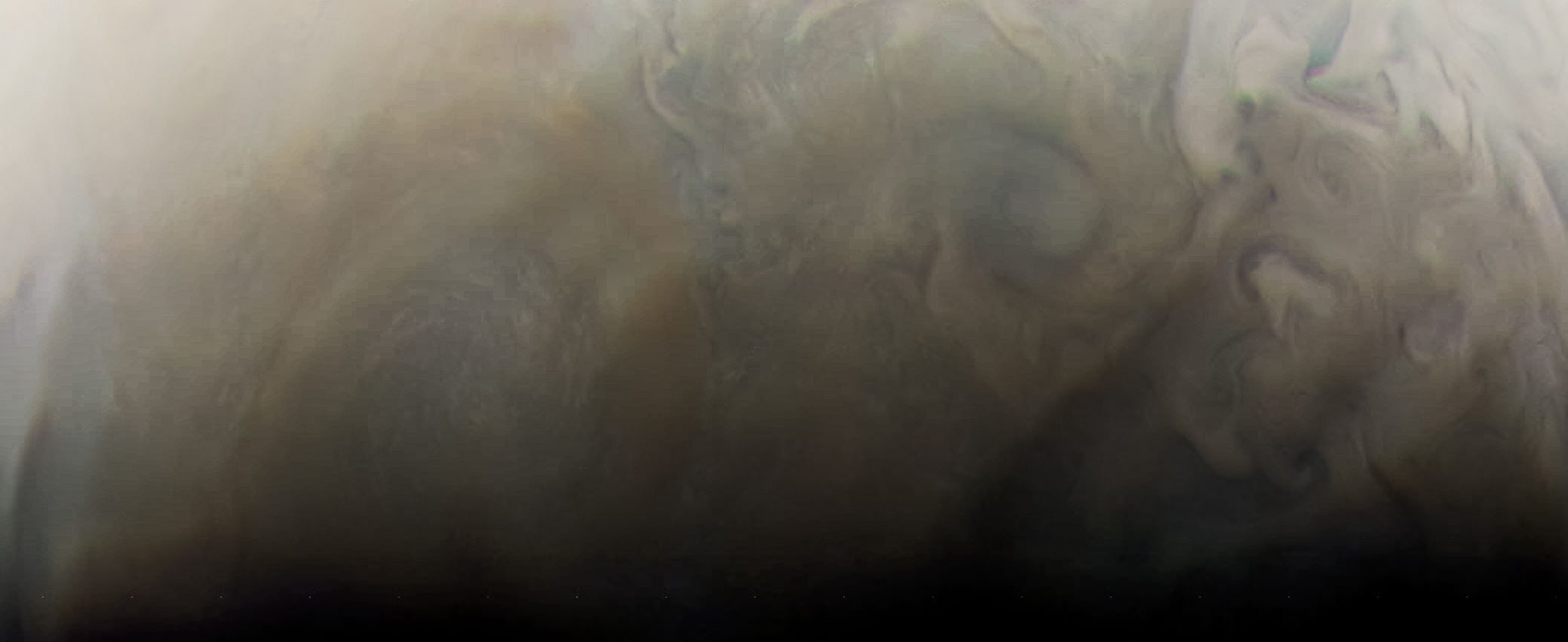 Junocam pixels are 12 bits deep from the camera but are converted to 8 bits inside the instrument using a lossless "companding" table, a process similar to gamma correction, to reduce their size. All Junocam products on the missionjuno website are in this 8-bit form as received on Earth. Scientific users interested in radiometric analysis should use the "RDR" data products archived with the Planetary Data System, which have been converted back to a linear 12-bit scale.