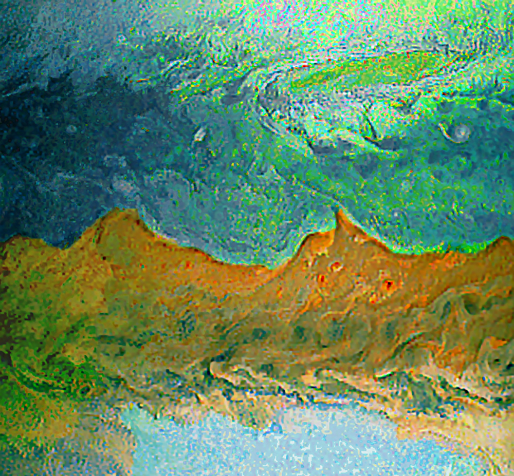I chose an image of Jupiter cloud bands as input, and used Photoshop to crop, modify colors and modify shading to create a "landscape" in the style of Vincent van Gogh.