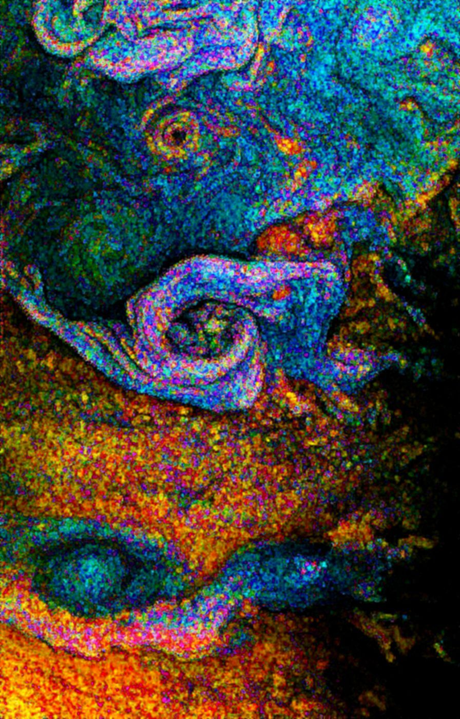 Junocam pixels are 12 bits deep from the camera but are converted to 8 bits inside the instrument using a lossless "companding" table, a process similar to gamma correction, to reduce their size. All Junocam products on the missionjuno website are in this 8-bit form as received on Earth. Scientific users interested in radiometric analysis should use the "RDR" data products archived with the Planetary Data System, which have been converted back to a linear 12-bit scale.