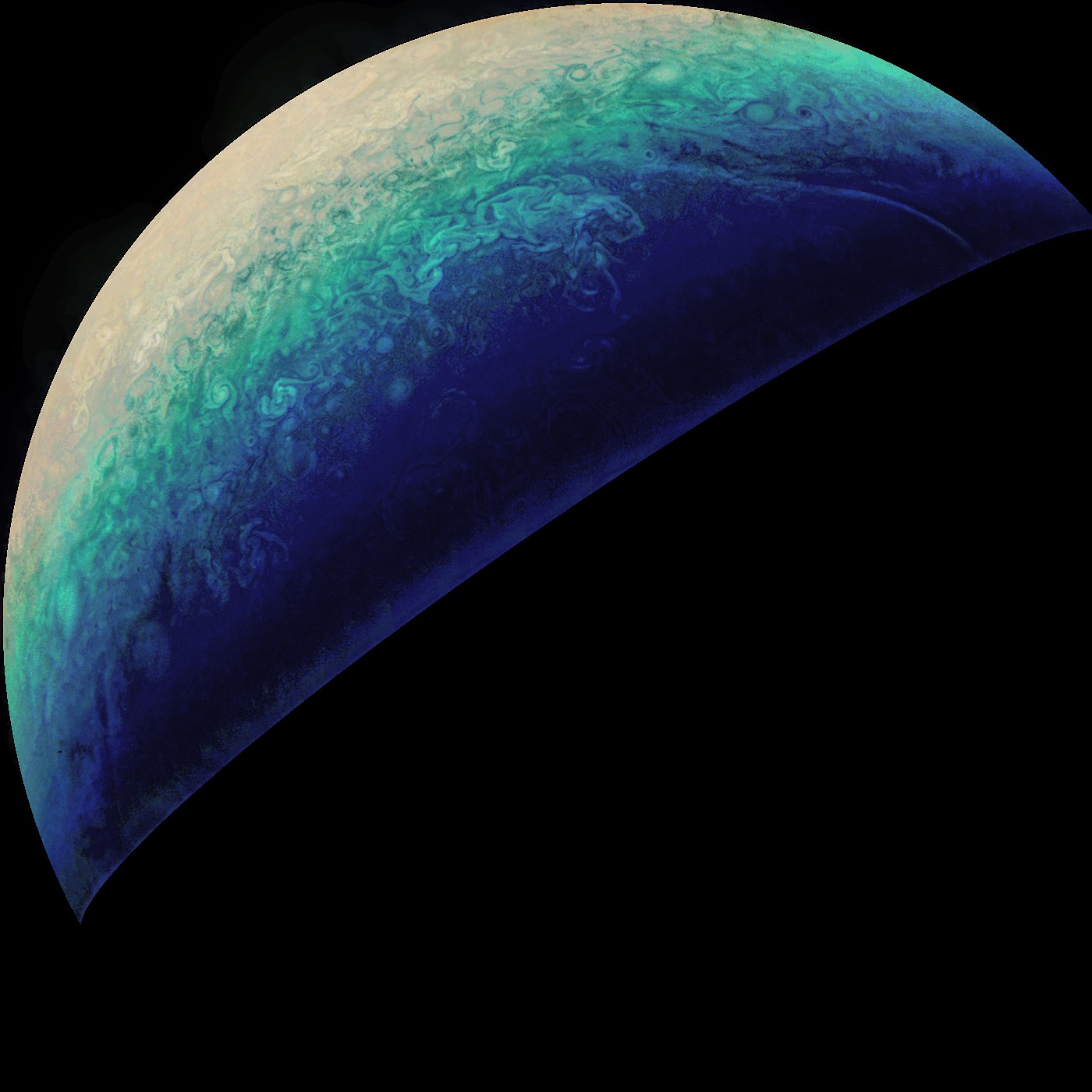 A special note about the Earth Flyby mission phase images: these were acquired in 2013 when Juno flew past Earth. Examples of processed images are shown; most contributions are from amateurs.