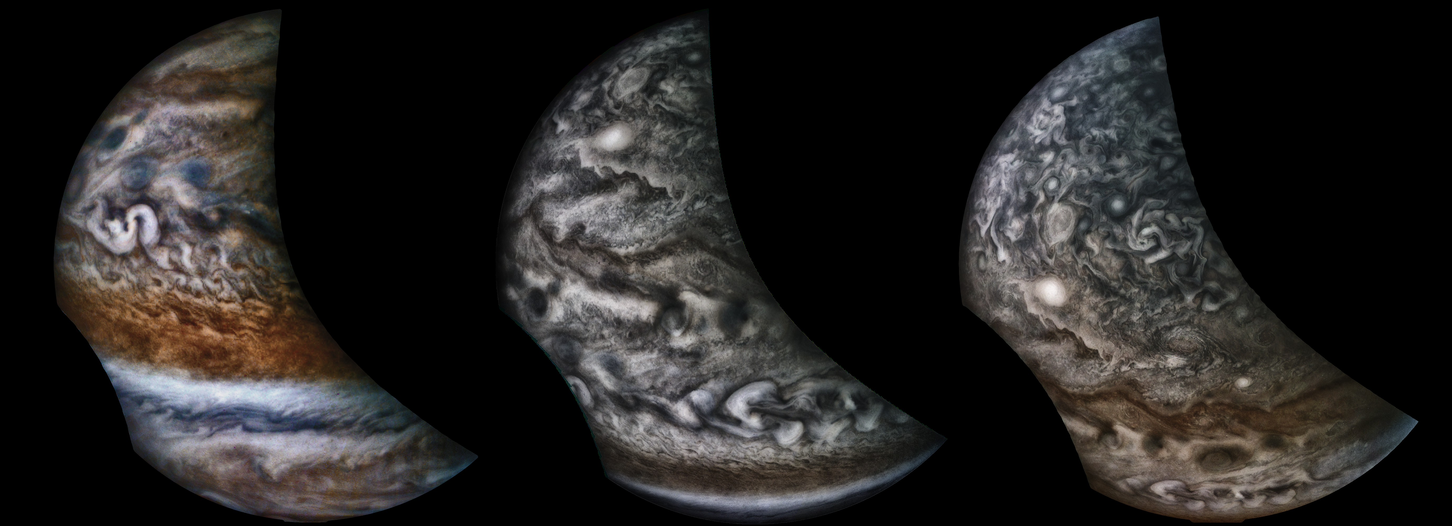 The JunoCam images are identified by a small spacecraft icon. You will see both raw and processed versions of the images as they become available. The JunoCam movie posts have too many images to post individually, so we are making them available for download in batches as zip files.