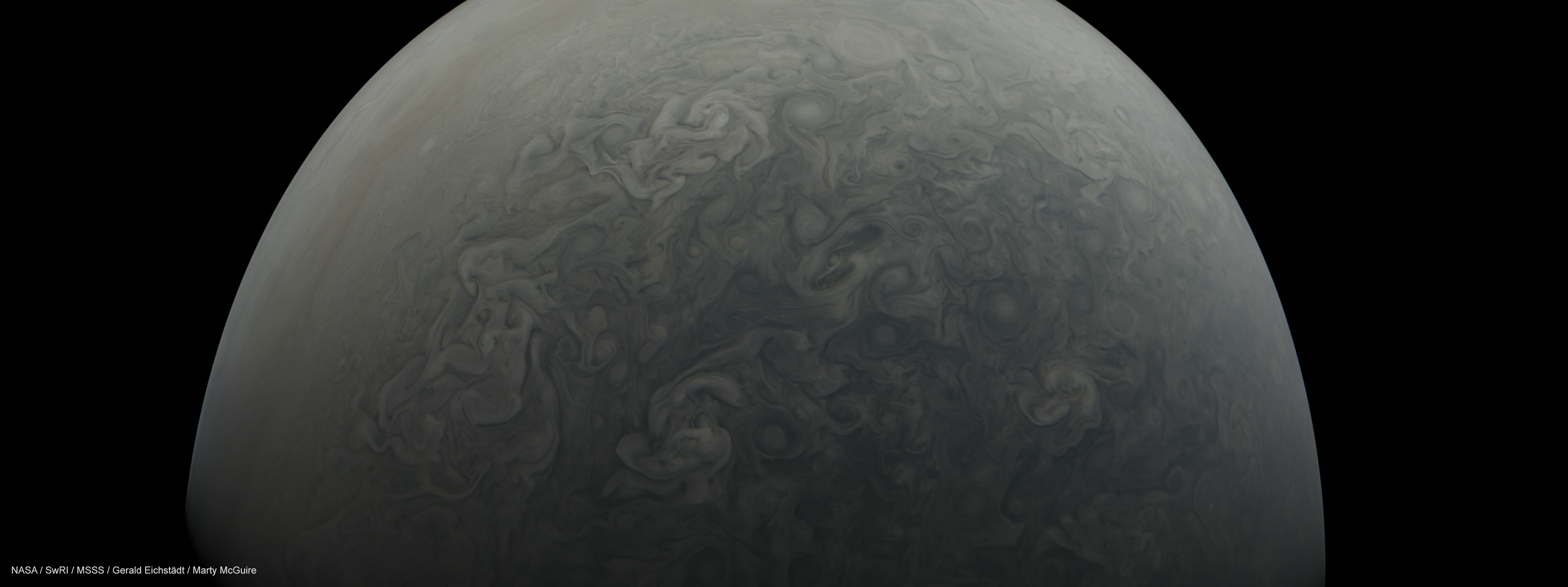 A special note about the Earth Flyby mission phase images: these were acquired in 2013 when Juno flew past Earth. Examples of processed images are shown; most contributions are from amateurs.