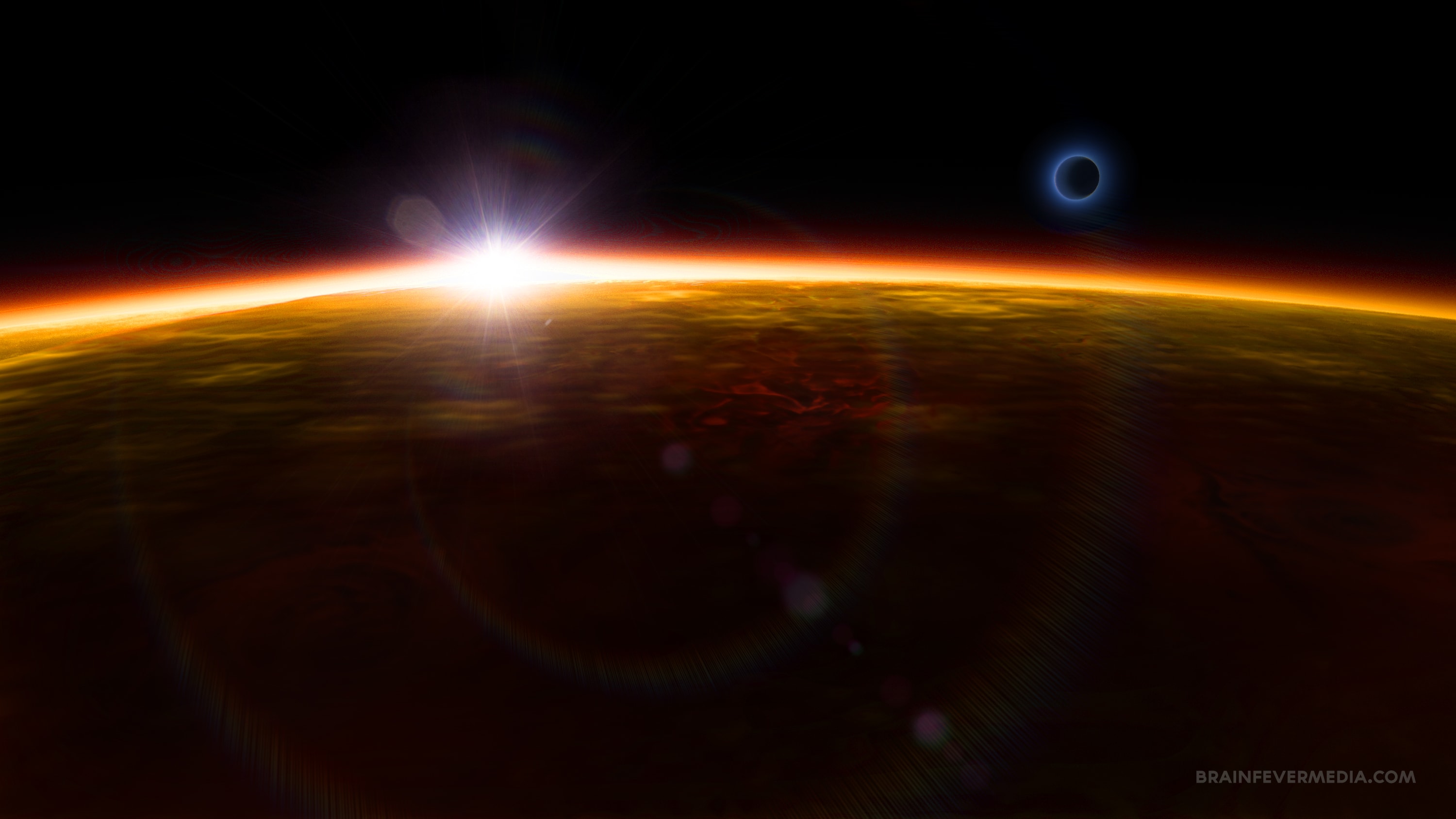 Sol breaching the horizon over the clouds of Jupiter. Created with Terragen and LensFlare Studio.