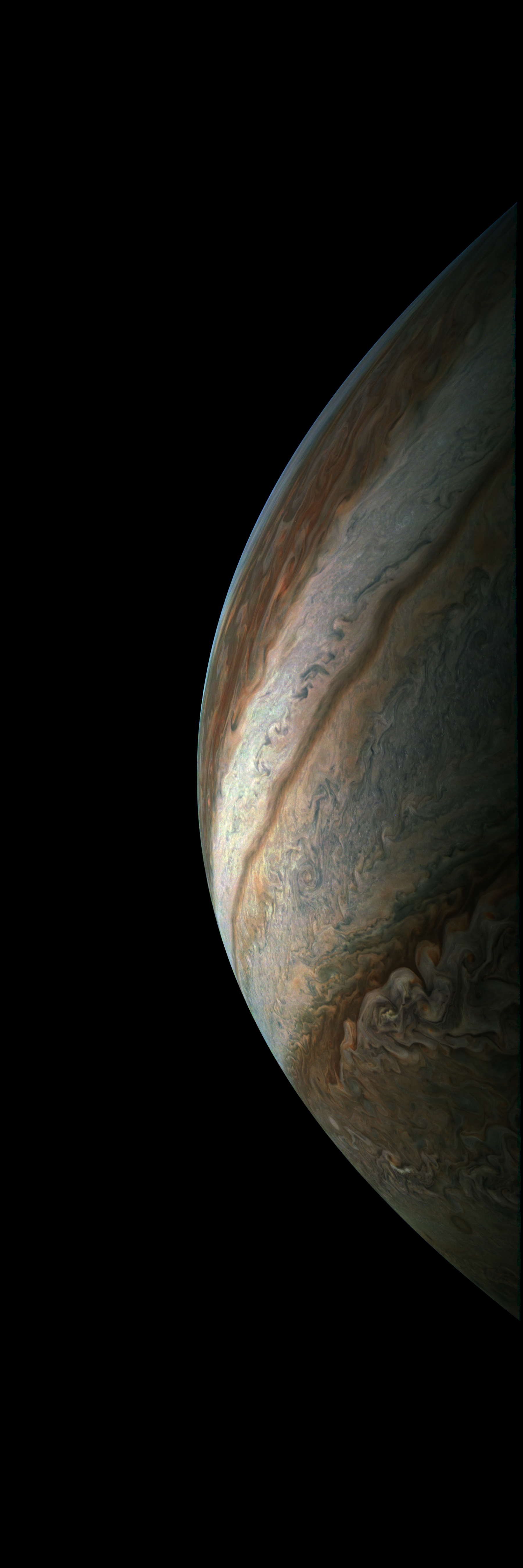 JunoCam took this image during its Perijove-11 pass on 2018-02-07. It is derived directly from the raw image.