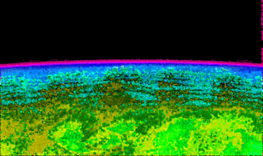 Junocam pixels are 12 bits deep from the camera but are converted to 8 bits inside the instrument using a lossless "companding" table, a process similar to gamma correction, to reduce their size. All Junocam products on the missionjuno website are in this 8-bit form as received on Earth. Scientific users interested in radiometric analysis should use the "RDR" data products archived with the Planetary Data System, which have been converted back to a linear 12-bit scale.