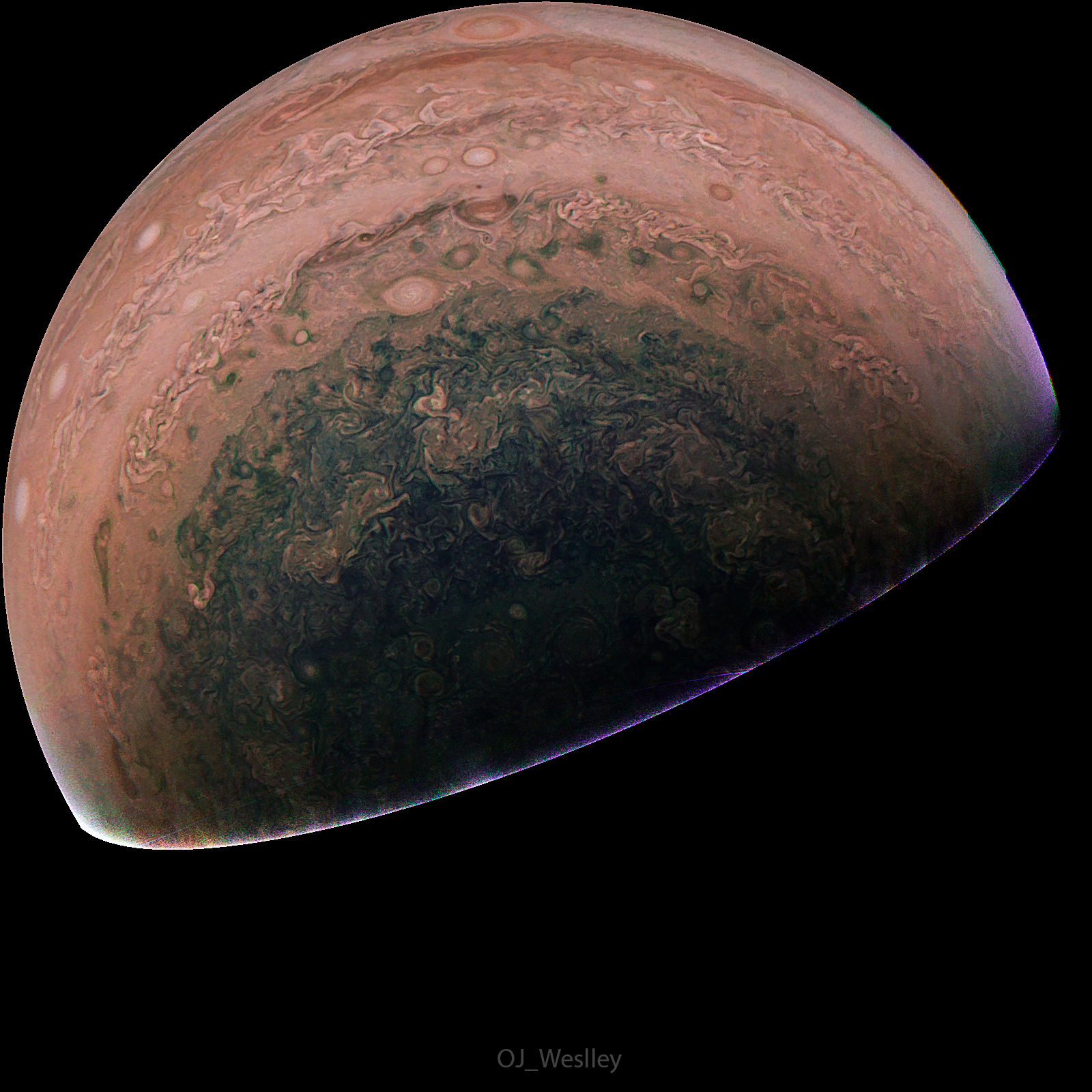 Image of Junocam, with the planet processed in High Colors.