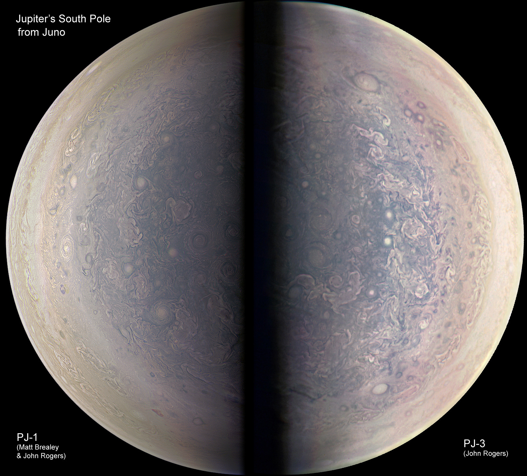 Here are two images taken directly over the south pole, from PJ-1 and PJ-3.