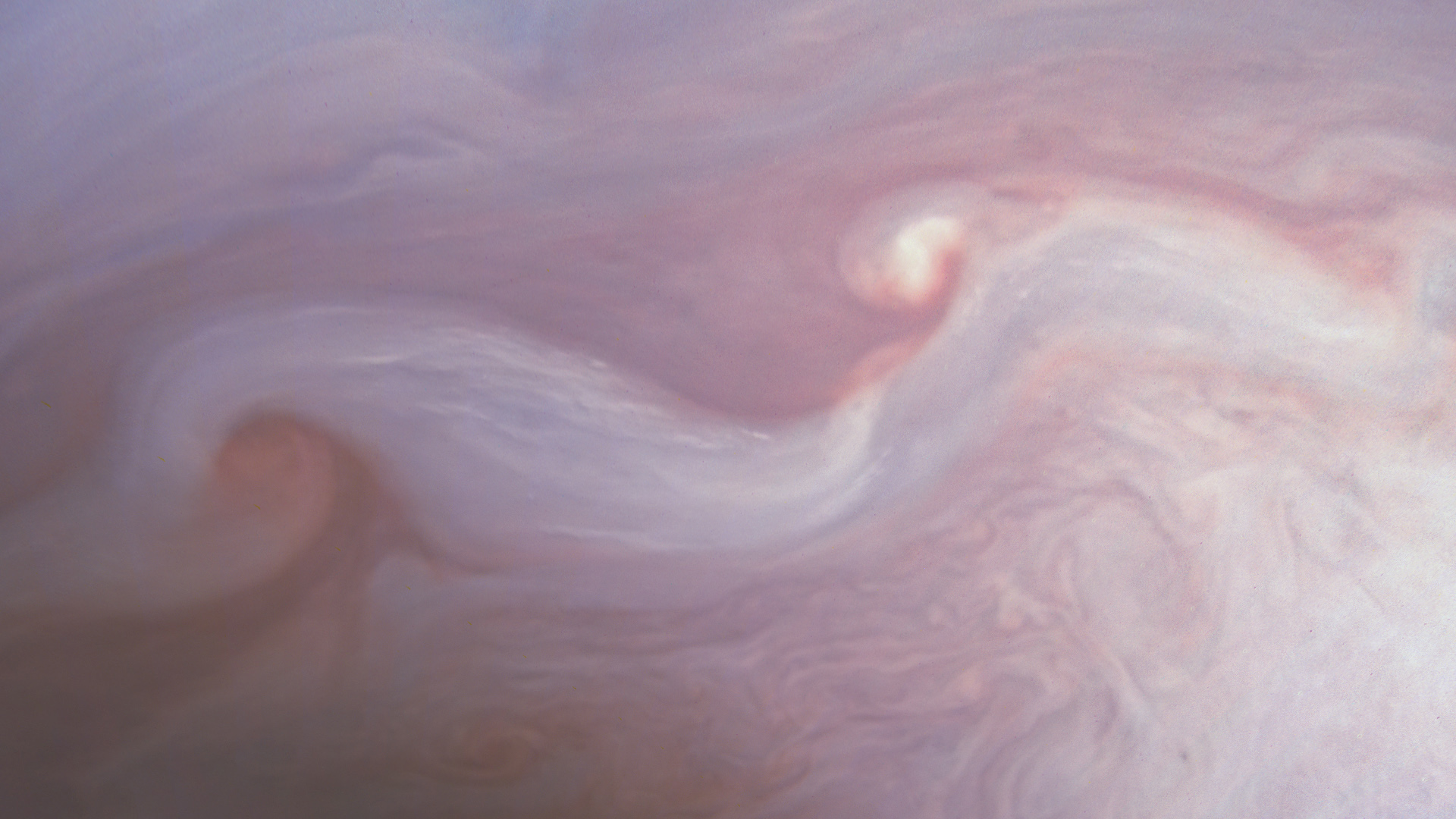 Junocam pixels are 12 bits deep from the camera but are converted to 8 bits inside the instrument using a lossless "companding" table, a process similar to gamma correction, to reduce their size. All Junocam products on the missionjuno website are in this 8-bit form as received on Earth. Scientific users interested in radiometric analysis should use the "RDR" data products archived with the Planetary Data System, which have been converted back to a linear 12-bit scale.