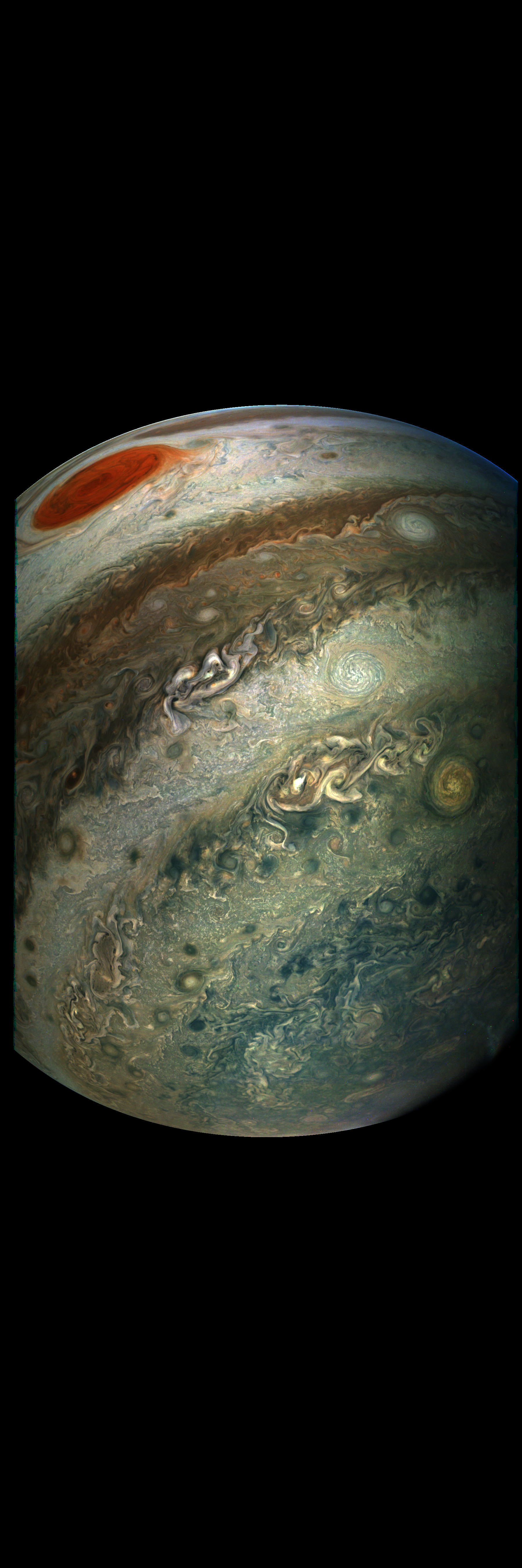 JunoCam took this image during its Perijove-12 pass on 2018-04-01. It is derived directly from the raw image.
