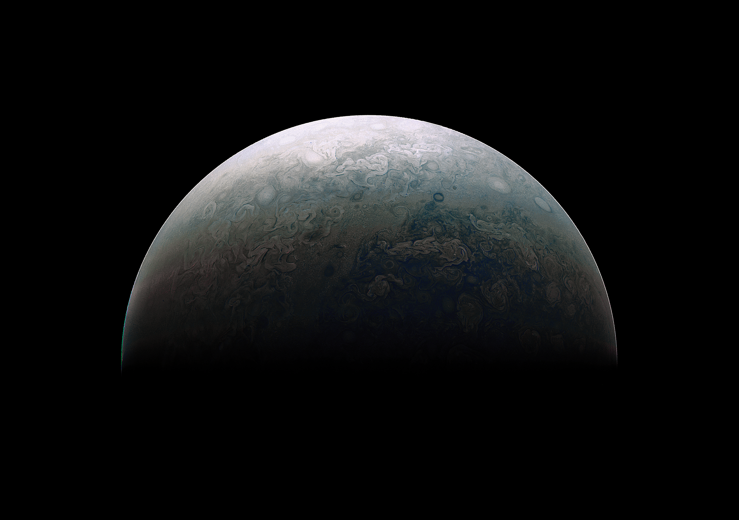My first processing of JunoCam images. I wanted to give the final image a softer, more natural look. It eerily resembles Earth.